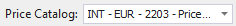 Това обозначава текущия ценови каталог. Всички промени, свързани с цените, ще засегнат само този каталог. Тази опция е налична във всички диалози, показващи данни за материалите (напр. профили, стъкло, аксесоари и фитинги, труд и др.). Единствената разлика, която се наблюдава при преход между ценови каталози, се отнася до самите цени; цялата останала важна информация остава непроменена.