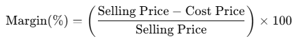 •МаржПроцентът от крайната продажна цена, който представлява печалба. Изчислява се въз основа на продажната цена.Маржът се базира на продажната цена, така че формулата използвадивизия. Преди това наричанПроцент върху резултата.
