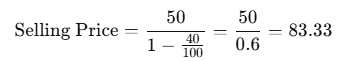 Следователно, продажната цена е83,33 $когато се приложи надценка от 40% към себестойност от 50 долара.