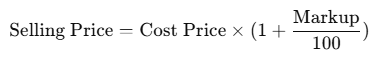 •МаркиранеПроцент, добавен към себестойността на продукта, за да се определи продажната му цена. Изчислява се въз основа на себестойността на продукта.Надценката се базира на себестойността, така че формулата използваумножение. Преди това наричанПроцент върху базата.