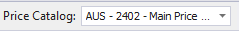 Това обозначава текущия ценови каталог. Всички промени, свързани с цените, ще засегнат само този каталог. Тази опция е налична във всички диалози, показващи данни за материалите (напр. профили, стъкло, аксесоари и фитинги, труд и др.). Единствената разлика, която се наблюдава при преход между ценови каталози, се отнася до самите цени; цялата останала важна информация остава непроменена.