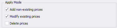•Добавяне на несъществуващи цениАко изходният каталог съдържа цени, които все още не са налични в целевия ценови каталог, тези цени ще бъдат добавени.